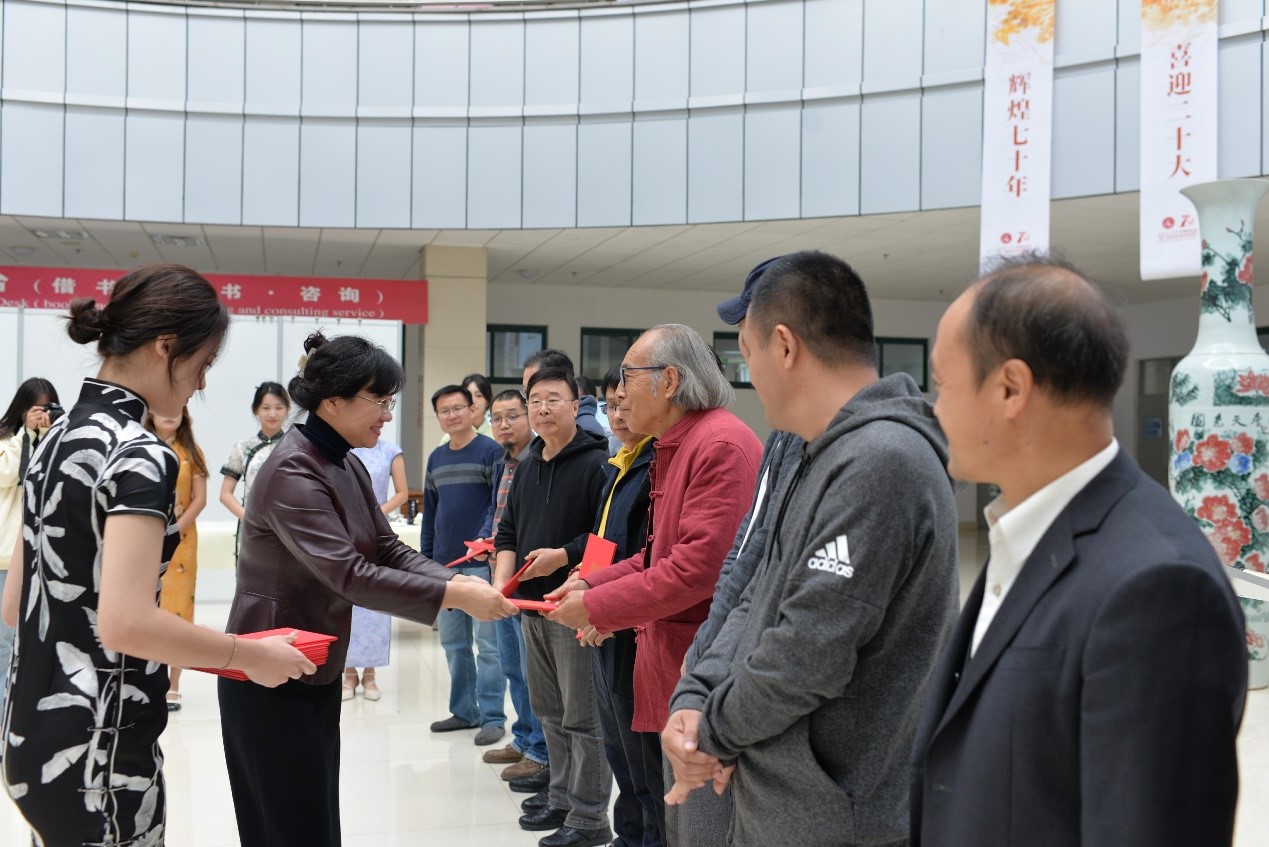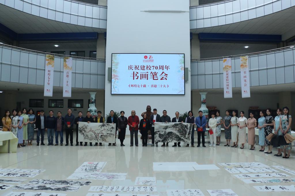 丹青润彩、墨韵传情,10月14日上午,庆祝建校70周年书画笔会在图书馆A座大厅举办。山东工艺美术学院造型学院副院长谢其云,中国美术家协会会员国家一级美术师李方玉,济南大学教授解均,济南大学副教授陈健,齐鲁工业大学副教授孙万灵,齐鲁师范学院美术学院副教授杨恩国,山东工艺美术学院副教授杨国栋,山东建筑大学书法与易学文化研究所所长谭延祯,山东艺术学院国画系副主任刘明,学校艺术设计学院副院长赵崇立,副教授李曙光、韦国、姜凌等校内外艺术家为笔会挥毫泼墨。党委副书记、校长李光红,党委副书记王淑霞和相关部门负责同志参加活动。