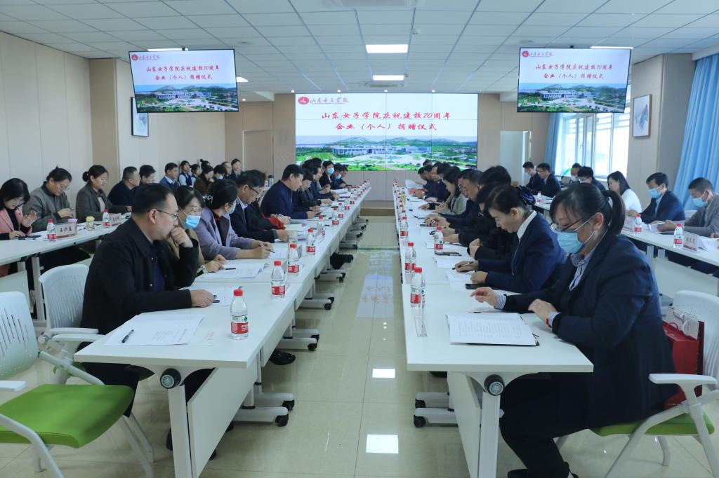 郭翠芬代表学校向捐赠企业和个人表示了诚挚的感谢。她指出,建校70年来学校取得成就和发展与全体师生的奋斗、广大校友们的支持帮助以及社会各界的关心厚爱是分不开的。企业和校友们的捐赠,不仅饱含对学校70周年华诞的深情祝福,同时体现了捐赠企业的和优秀校友对学校的殷切期待,更是对学校事业发展所取得的成绩一种认可与肯定。学校将继续紧密对接山东省发展战略,主动服务妇女儿童和老龄事业发展,坚持应用型办学定位,坚持内涵式发展、特色发展、高质量发展,为加快建设特色鲜明的高水平应用型女子大学而努力奋斗。