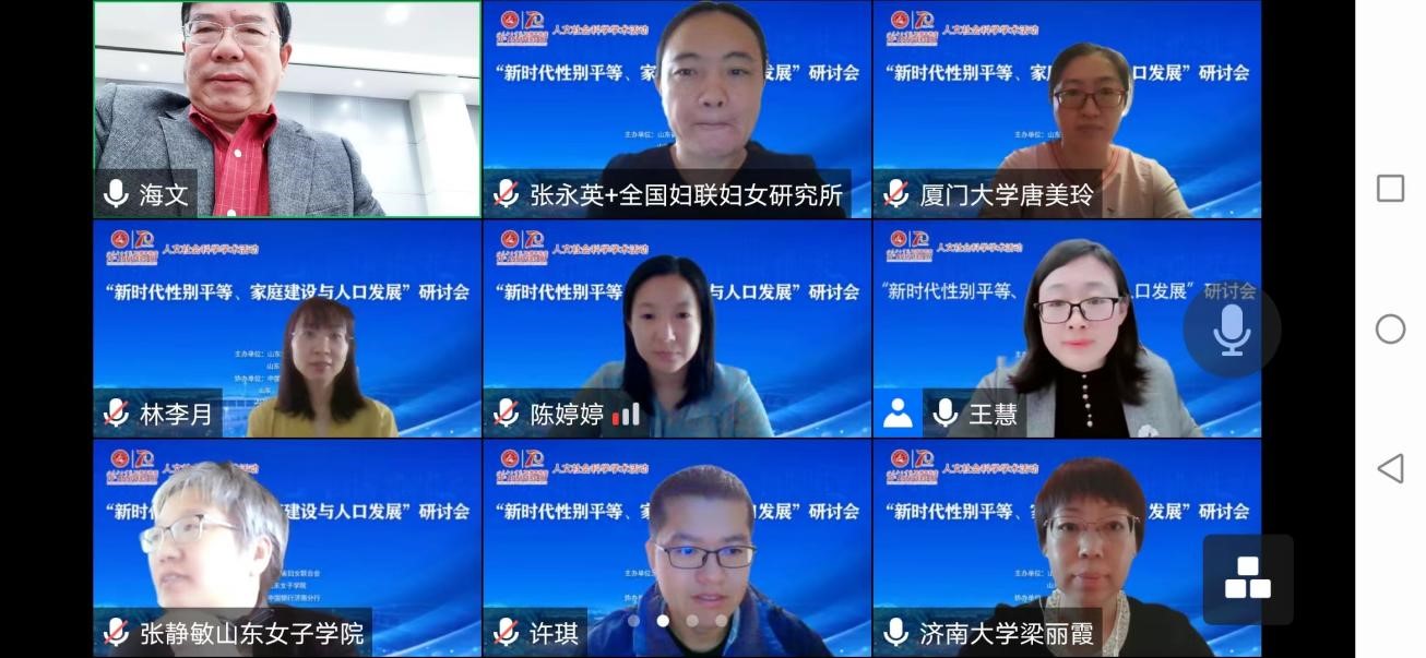 为深入学习宣传贯彻党的二十大精神,推动党中央关于促进人口均衡发展的战略部署,深化对人口变局背后深层次因素的学理认知,把握性别平等、家庭建设与人口发展之间的关联机制,11月12日下午至13日上午,山东省妇女联合会、山东女子学院联合举办“新时代性别平等、家庭建设与人口发展”学术研讨会。本次研讨会共有来自省内外31所高等院校、科研院所和中国妇女报社的48位专家学者进行了主旨发言、专题研讨和主持评议。线上线下千余名学者和我校师生共同参会。